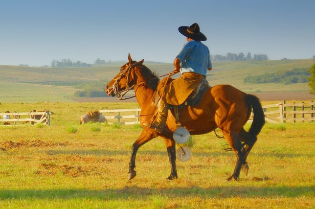 "Extensas pradarias e coxilhas compõem o cenário conhecido como o Pampa. É nesse teritório e espaço físico que habita o gaúcho. Imensos campos verdes, açudes, pássaros e mata nativa formam uma paisagem sóbria e bela, que no passado foi berço de movimentos armadas, como a Revolução Farroupilha, episódio da história do Brasil, contado em produções cinematográficas e de TV"