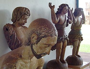 Museu das Missões: "O Museu das Missões faz parte do sítio tombado pela União em 1937, onde está situado o mais significativo remanescente material dos Sete Povos das Missões, comunidades indígenas lideradas e organizadas pelos Jesuítas. Neste sítio foi erguida a Igreja de São Miguel Arcanjo, declarada Patrimônio Mundial pela Unesco, em 1983. O Museu foi criado em 8 de março de 1940, projeto do arquiteto Lucio Costa e abriga a maior coleção de arte missioneira do Brasil. De terça-feira à domingo é realizado no Sítio Histórico o espetáculo de "Som e Luz" relatando as guerras guaraníticas. O Museu também apresenta os vídeos "Sonho da Paixão" e "Computação Gráfica"